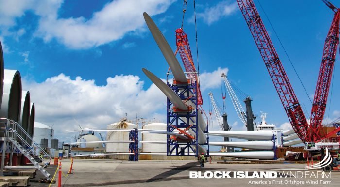 Unloading blades for the Block Island Wind Farm. Photo from Deepwater Wind