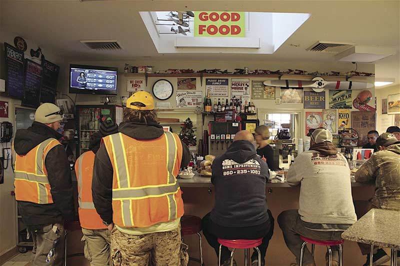 Workers sit at the counter of Bethany’s Airport Diner. Photo by K. Curtis/Block Island Times