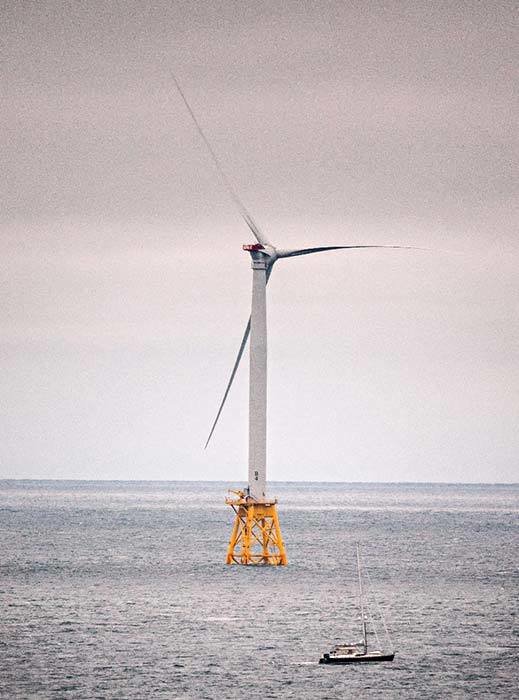 One of the five GE Haliade 6-MW turbines that make up the Block Island Wind Farm. Photo by Dennis Schroeder, NREL 40485