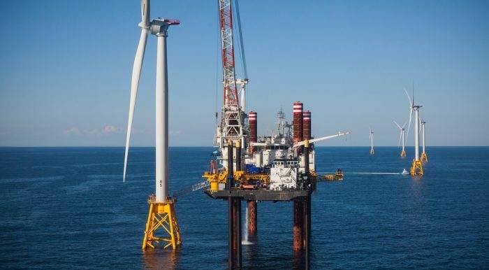 Construction of the Block Island Wind Farm. Photo from Deepwater Wind